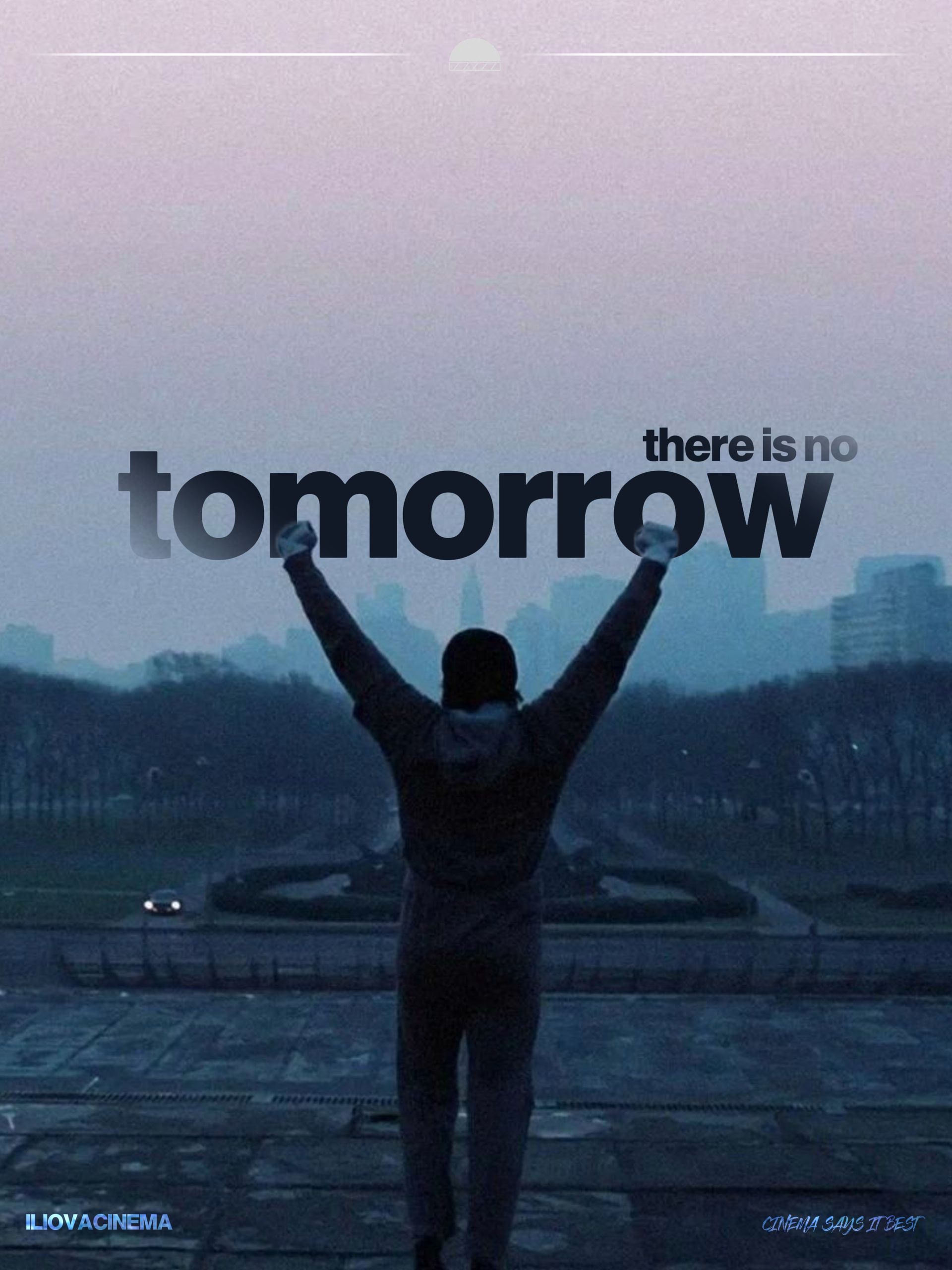 In Rocky III, that someone is Apollo. He screams at Rocky during training: “There is no tomorrow!”